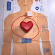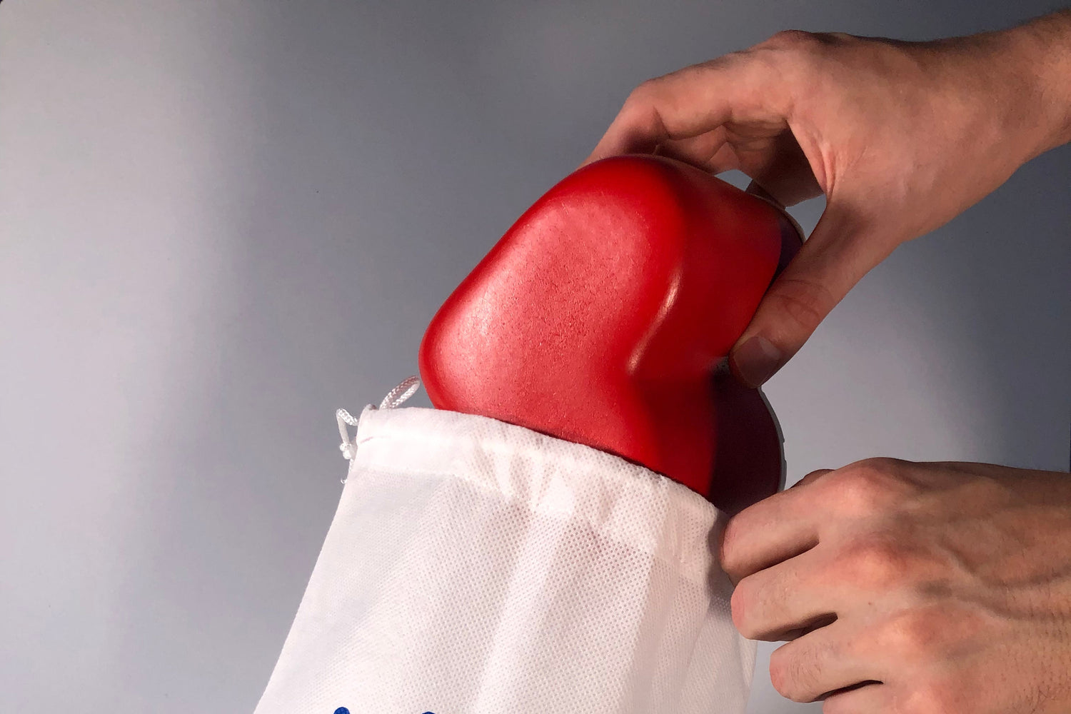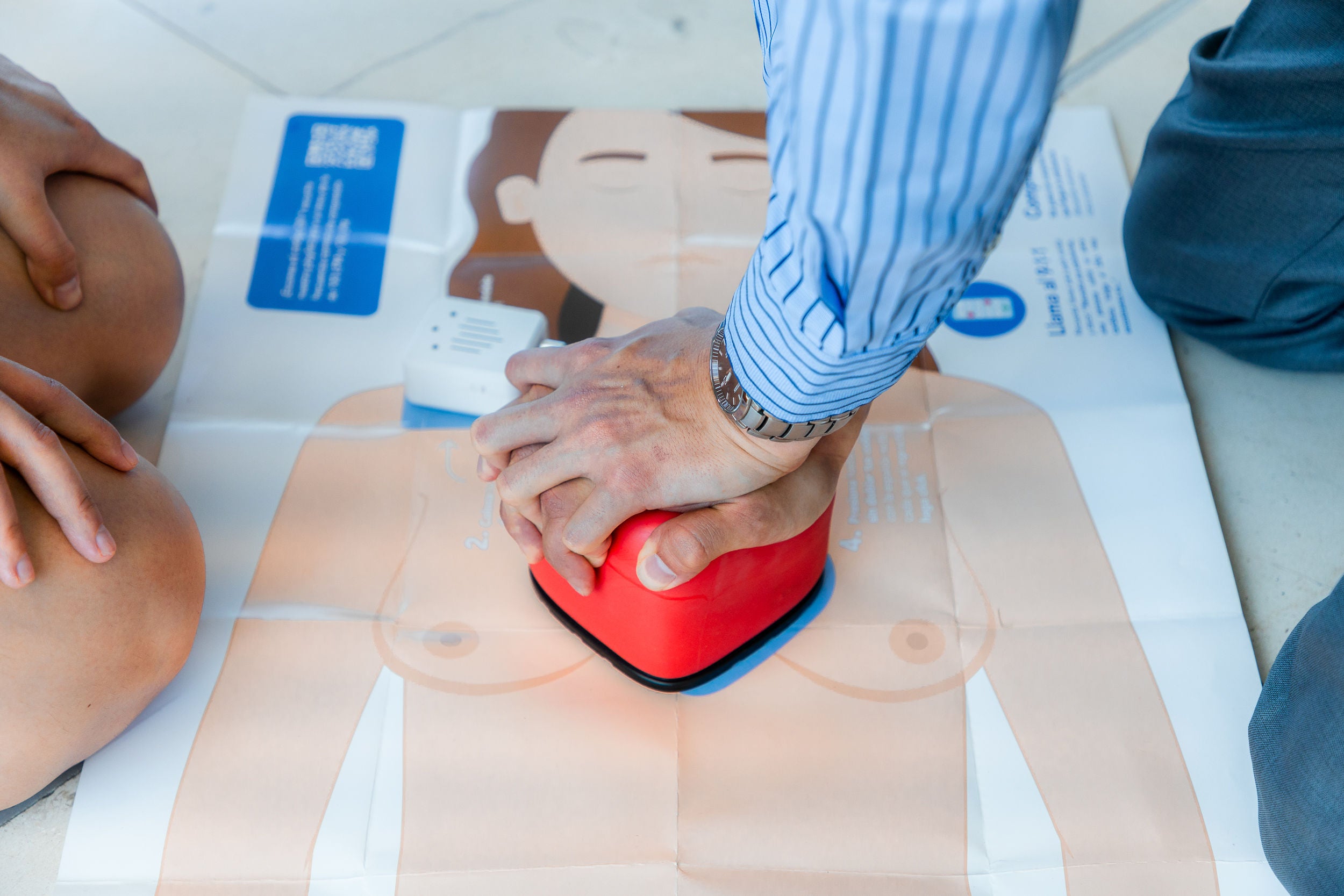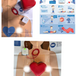 El paquete incluye: el tapete con la silueta del paciente, el corazón-sensor que mide profundidad y frecuencia, guía sonora integrada, y las instrucciones impresas en el reverso de la silueta. No necesitas maniquí completo ni accesorios adicionales para empezar a entrenar.